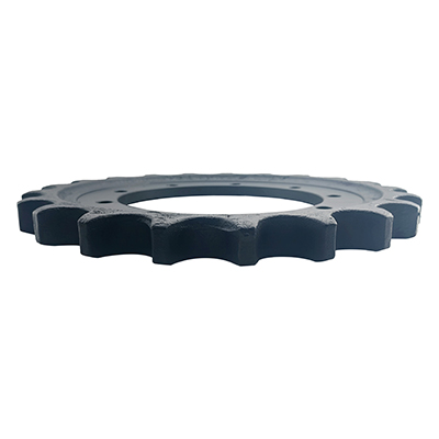 KettenradUm die Gesamtlebensdauer der Fahrwerkskomponenten zu maximieren, sollten die Ketten und Gummiketten gleichzeitig ausgetauscht werden.